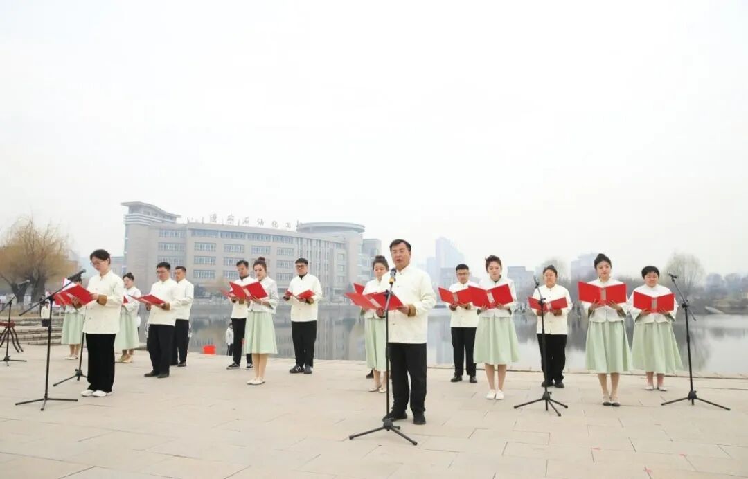 “逢春开湖,红鲤腾躍,师生煦煦,乐享青阳……”,辽宁石油化工大学校院两级专兼职团干部朗诵《莫言湖赋》,团干部的齐声诵读,集中抒发了我校教职员工对学校的爱校、荣校之情。