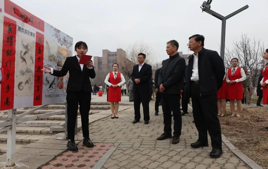 仪式结束后,辽宁石油化工大学全体校领导、与会师生移步莫言湖畔,观赏传统文化书法、绘画作品展。