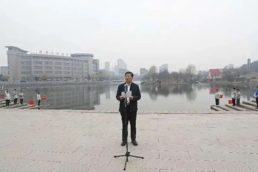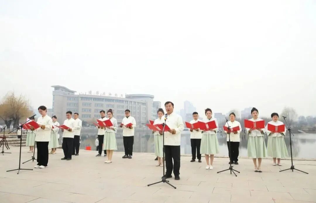 “逢春开湖,红鲤腾躍,师生煦煦,乐享青阳……”,校院两级专兼职团干部朗诵《莫言湖赋》,团干部的齐声诵读,集中抒发了我校教职员工对学校的爱校、荣校之情。