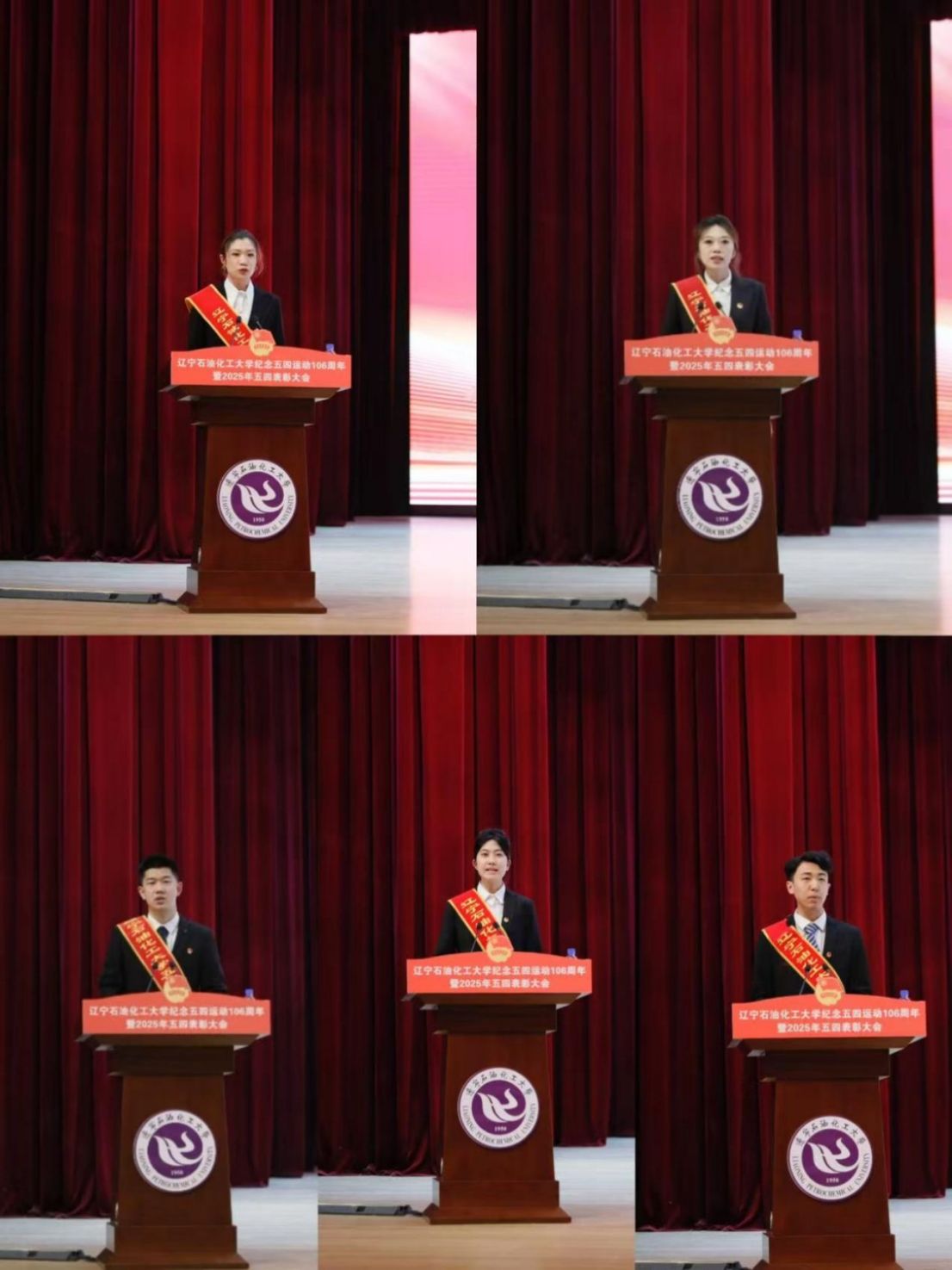 石油化工学院团委书记左浩淼、石油天然气工程学院储卓2201团支部副书记王涛、信息与控制工程学院自卓2302团支部邱紫桐、机械工程学院团委书记赵梦茁、校团委宣传部负责人陈煦阳分别代表五四红旗团委、五四红旗团支部、优秀共青团员、优秀共青团干部发言。